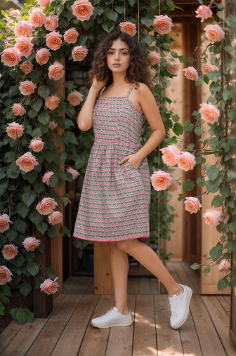 This setting is ideal for spring/summer-themed fashion photography and conveys a fresh, floral, and laid-back aesthetic with romantic undertones.