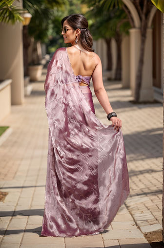 The atmosphere is peaceful and refined, ideal for fashion photography that highlights grace, tradition, or minimalistic luxury. The blend of greenery, neutral tones, and structured design evokes a sense of calm sophistication, complementing traditional attire like sarees.